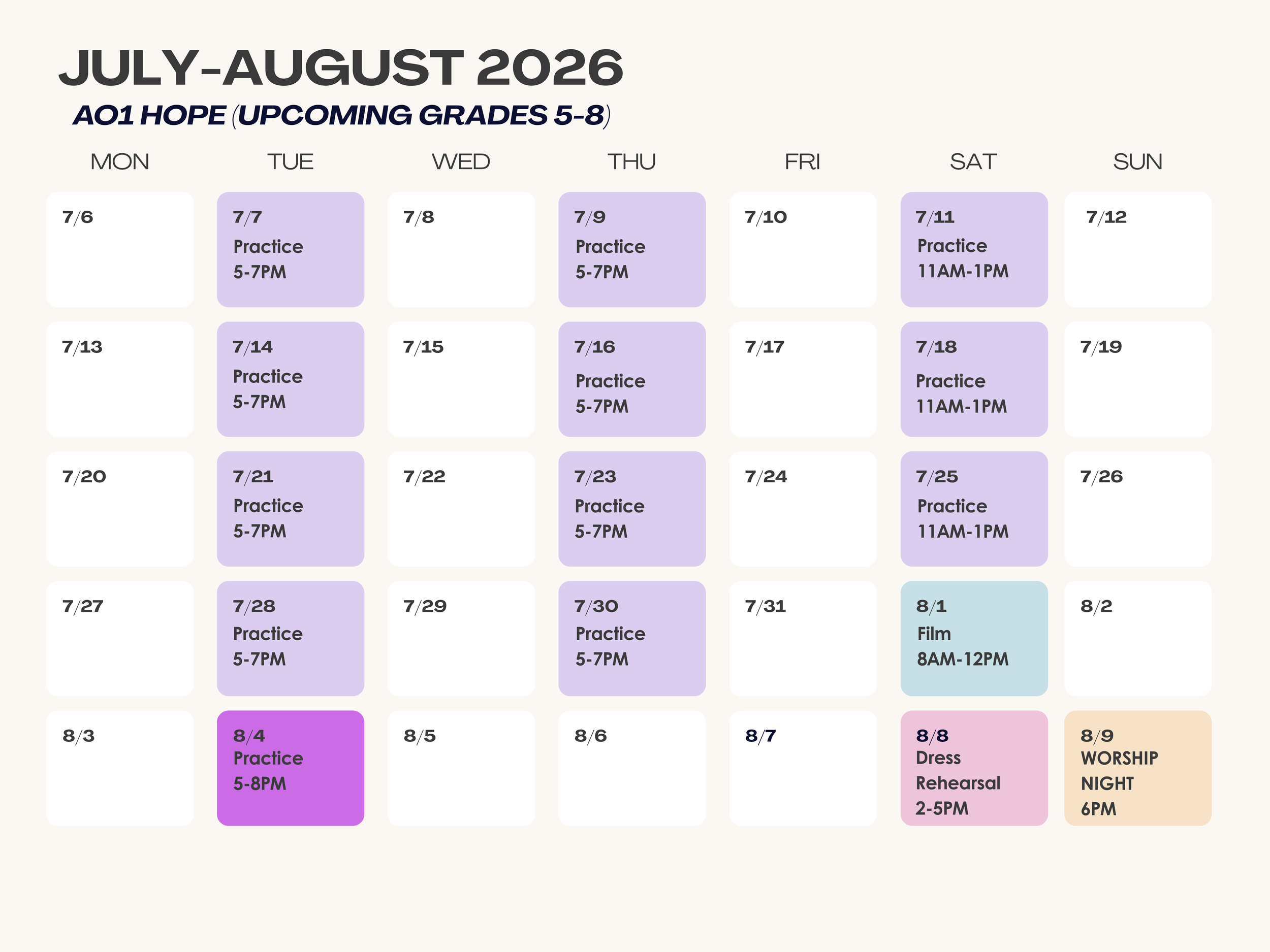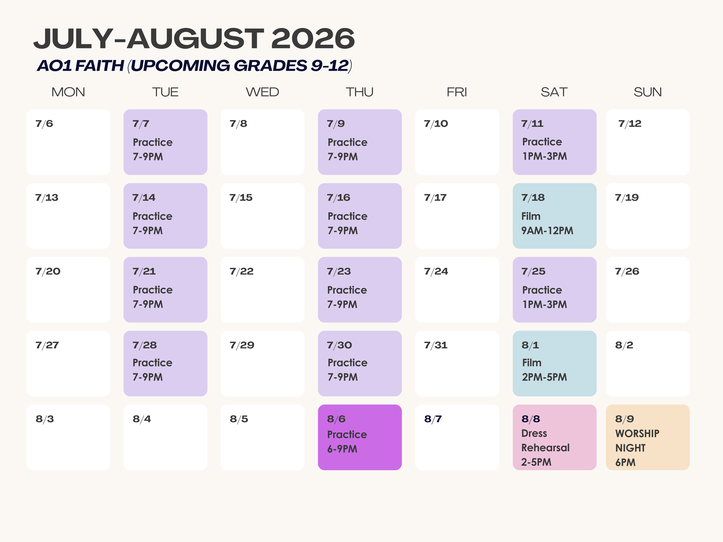 Almost ALL of our AO1 members have had NO PRIOR DANCE EXPERIENCE coming into the team. We foster a safe space, embracing the body God has created to ultimately worship. While we train and equip our dancers with fundamentals, our main focus is on building faith-filled relationships and glorifying God.
