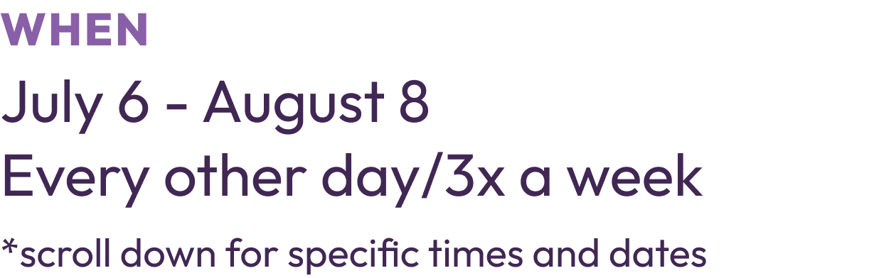 I have a commitment (academy/summer camp) during the day so time is an issue.